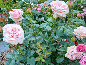 Характеристики: Цвет: нежно-розовый Размер цветка: 10-12 см Периодичность цветения: волнами Высота куста: 60-80 см Ширина куста: 60 см Аромат: средний Устойчивость к заболеваниям: высокая Морозостойкость: высокая