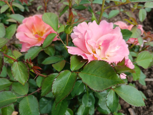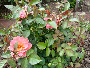 Роза имеет яркий лососево-розовый цвет. Бутоны классической формы.