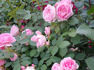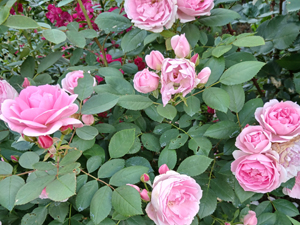Цветки крупные, густомахровые имеют насыщенный цвет, выгорают до нежно-розовых.