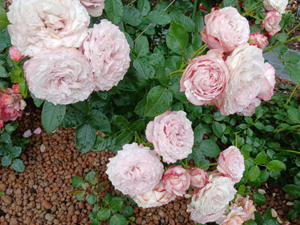 Цветки густомахровые, собраны в соцветия, имеют розово-лавандовую окраску.